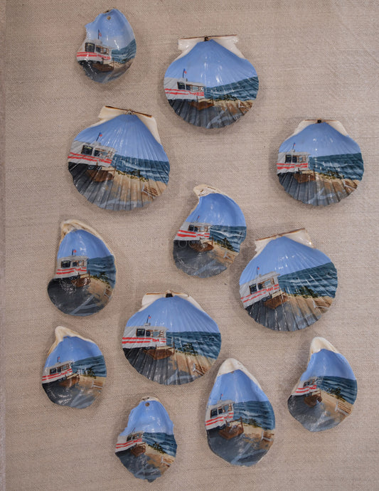 Bring the beauty of the coast to your holiday decor with our exclusive hand-painted seashell ornaments, each crafted from real seashells found along the East End shores. From iconic Montauk scenes to serene ocean moments, every ornament is designed to bring a unique touch of the sea into your home.