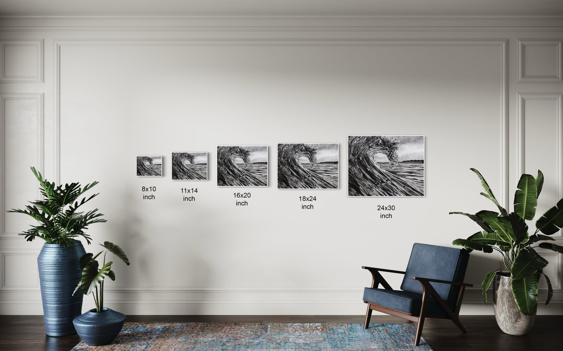 While the original 40x30 inch charcoal drawing has been sold, you can bring home its stunning details in this high-quality print, capturing the profound energy of the ocean.