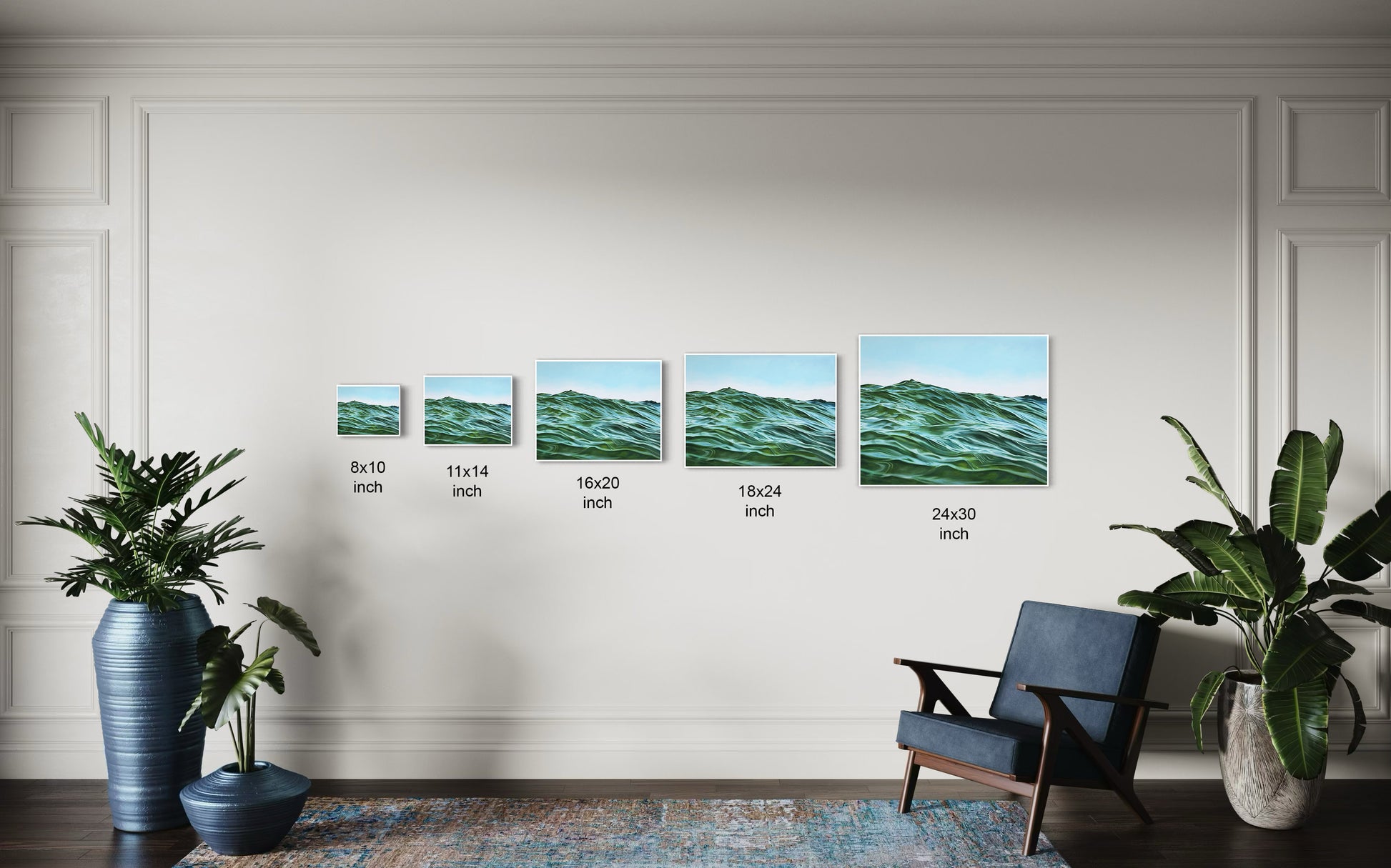 Bring the captivating essence of the sea into your home with “From Where You Came,” a fine art print of Candace Ceslow’s original 58x44 inch oil on canvas. This artwork portrays a rolling green and blue ocean, rich with texture and depth, inviting a connection to the ocean’s timeless rhythm.