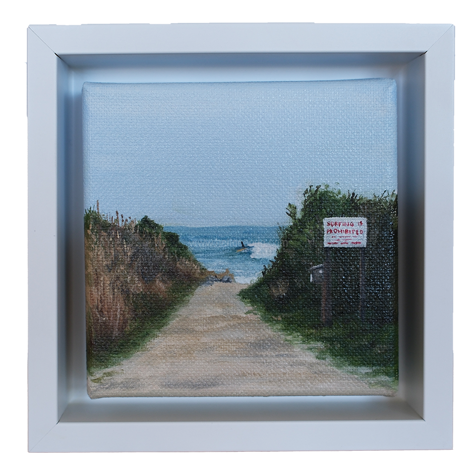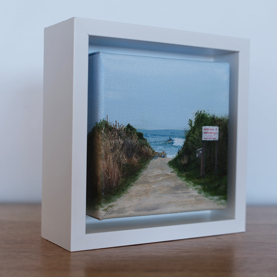 Mini #28 captures that familiar East End path—the sandy trail, the ocean just ahead, and all the tiny details that make these spots feel like home. Hand-painted in oil, this 4x4-inch framed mini brings that anticipation of reaching the beach into your space.