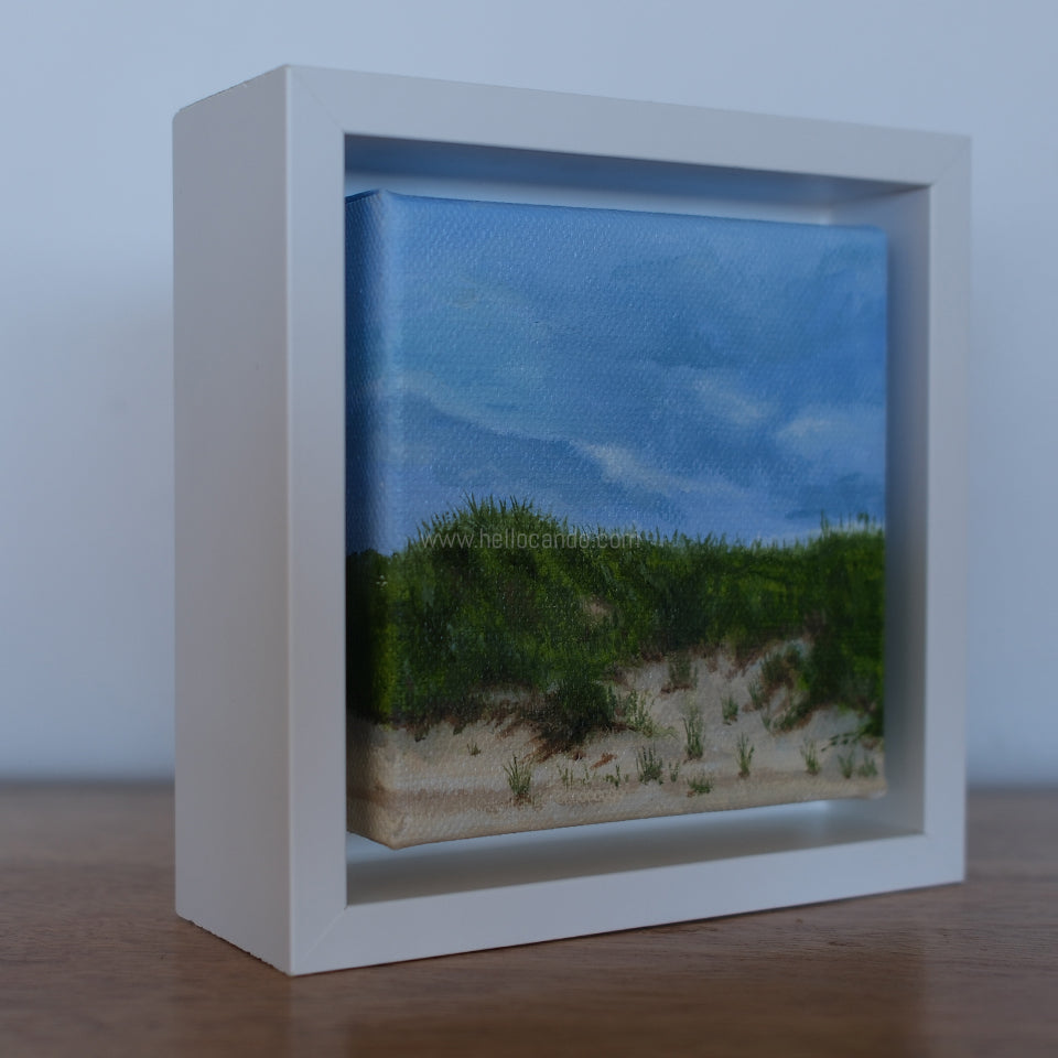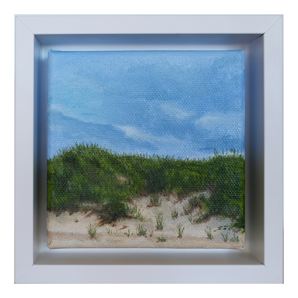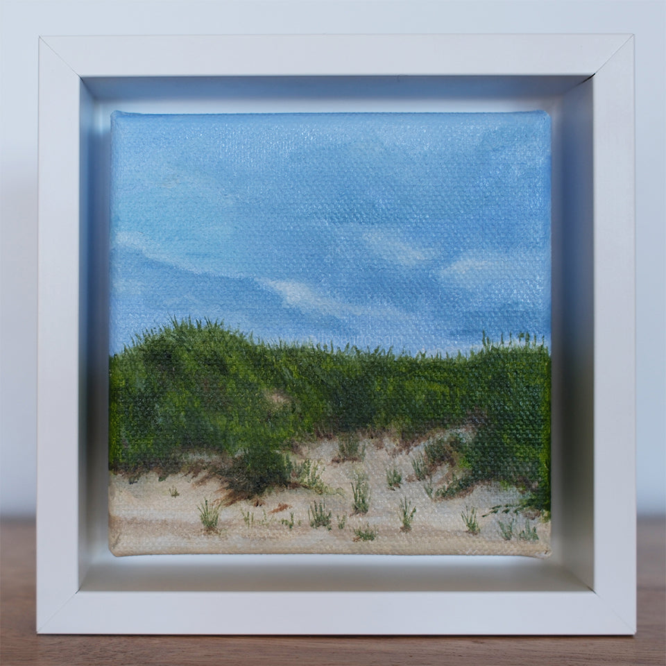 Mini #29 is a tiny breath of summer — bright sky, soft dunes, and beach grass catching the light. This 4x4-inch original oil painting brings that simple, peaceful feeling of the East End shoreline right into your home.