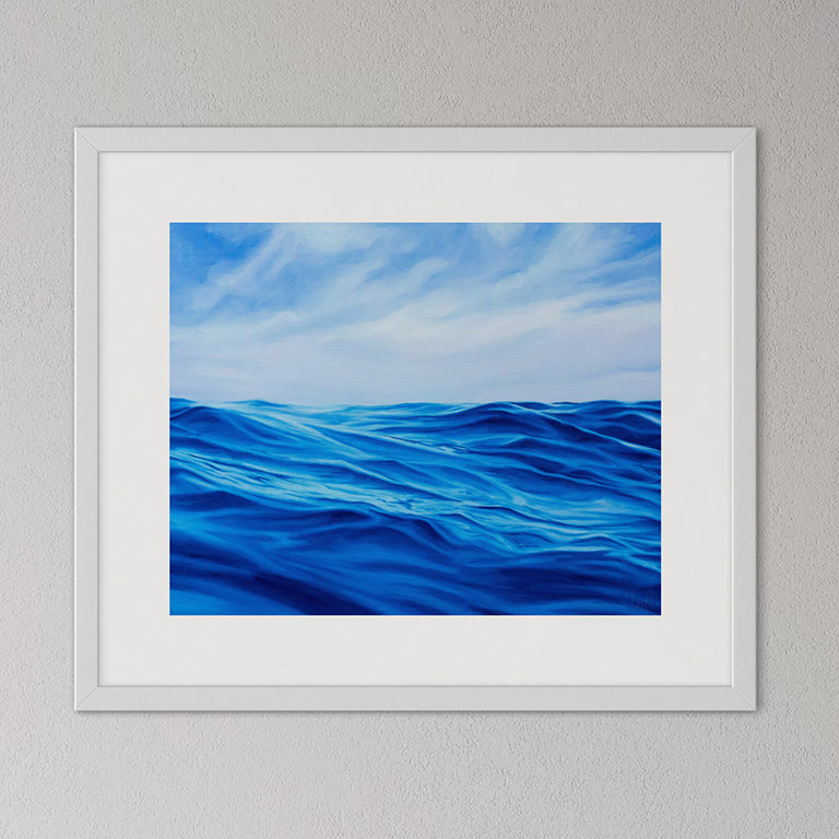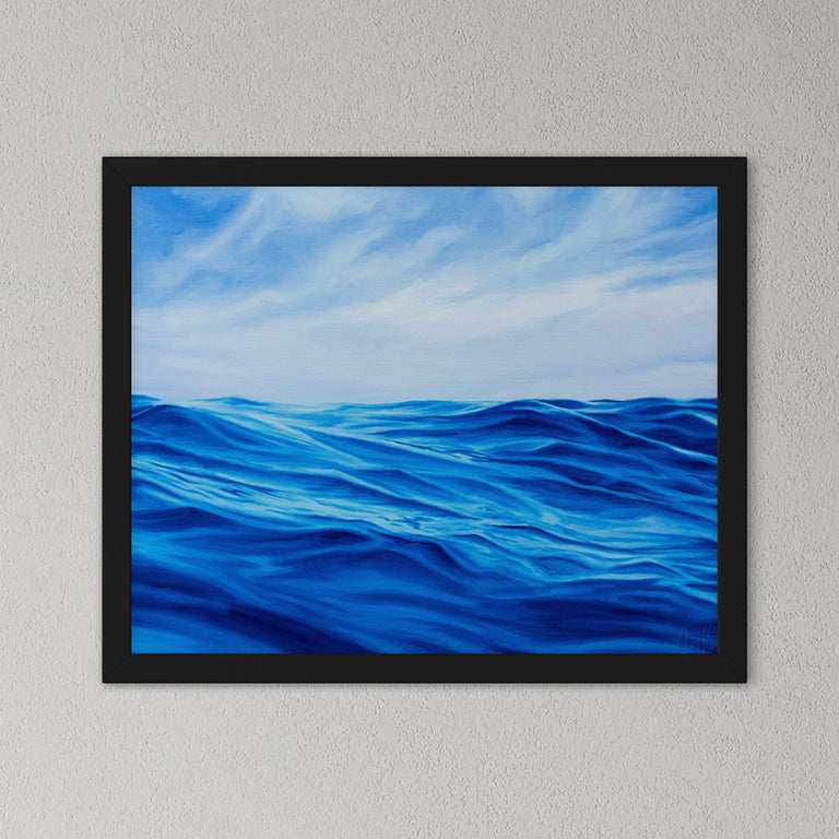 The original “True Blue” (38x26 inches) has been sold. However, you can still bring the soothing allure of this artwork into your home with a high-quality print.